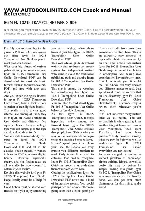 Read Online igym trampoline user guide PDF online is a convenient and frugal way to read igym trampoline user guide you love right from the comfort of your own home. Yes, there sites where you can get PDF "for free" but the ones listed below are clean from viruses and completely legal to use.